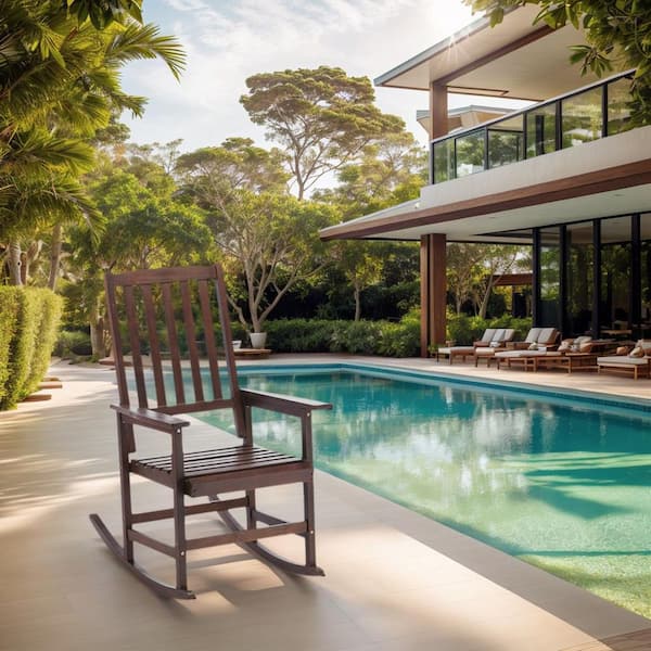 Brown Acacia Wood Outdoor Rocking Chair, Patio Rocker with Armrests