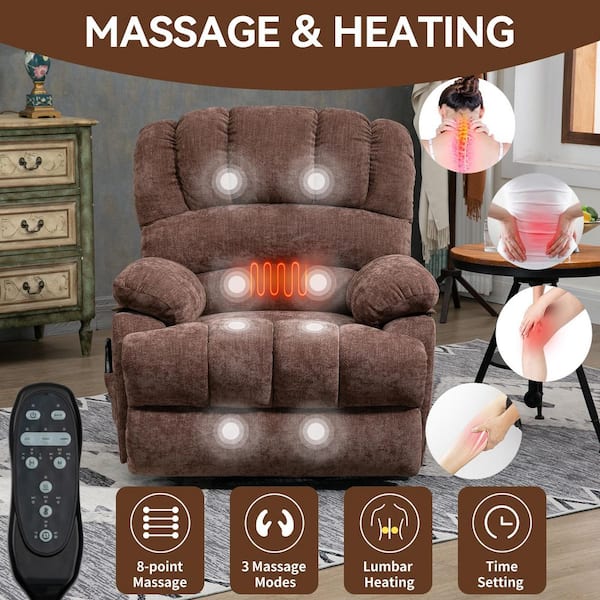 Brown Chenille Power Lift Recliner Chair with Vibration Massage and Lumbar Heat