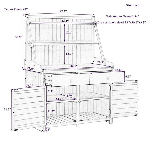 Brown Fir Wood 47 in. W x 65 in. H Garden Potting Bench Table, Garden Workstation with Storage Shelf, Drawer and Cabinet