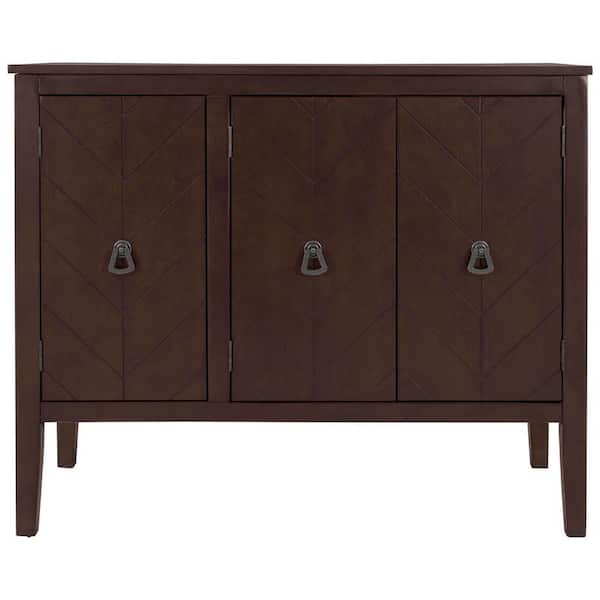 Brown MDF 37 in. 3-Door Sideboard Buffet Cabinet Accent Storage Cabinet Kitchen Cupboard Coffee Bar Cabinet