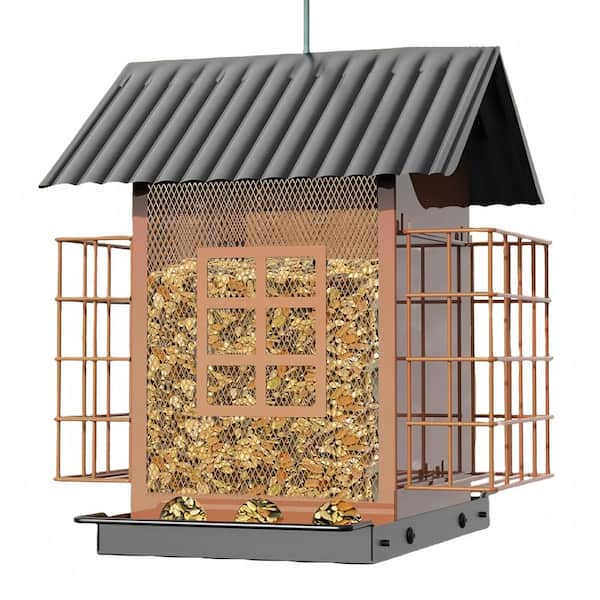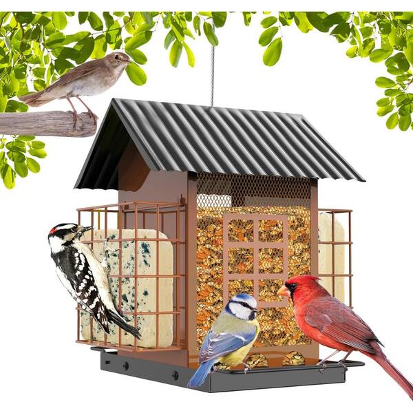 Brown Metal Large Capacity Bird Feeders with Double Suet Cage Cake for Outdoor Hanging
