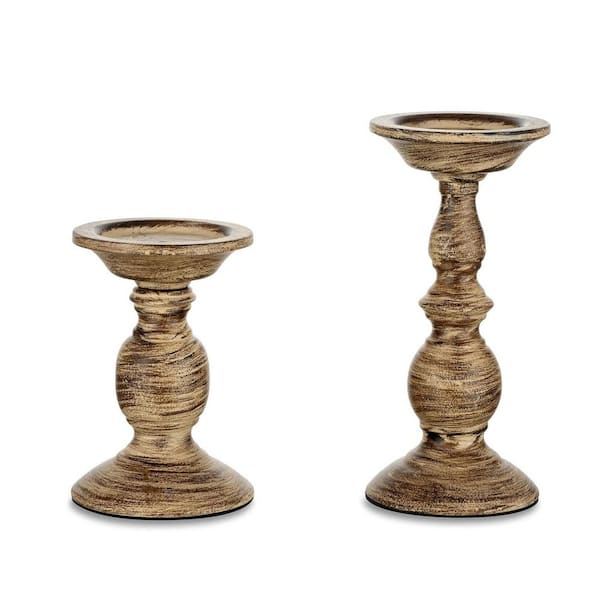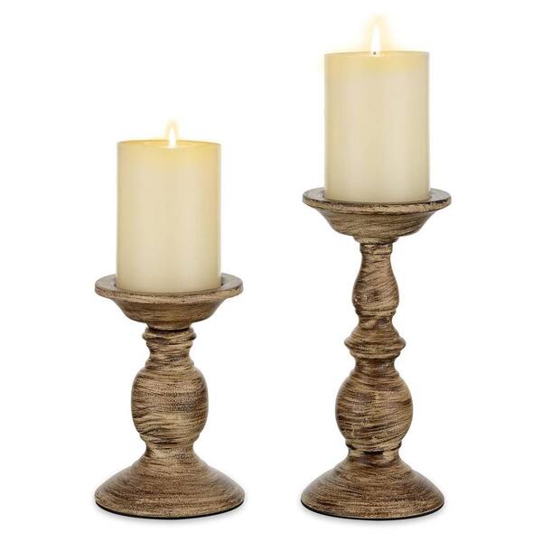 Brown Metal Pillar Candle Holder 2-Pack