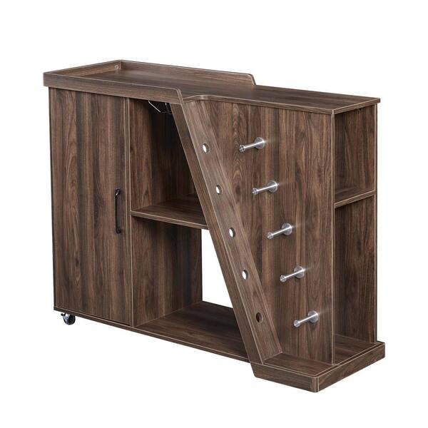 Brown Modern Kitchen Island Cart on Wheels with Adjustable Shelf and 5 Wine Holders