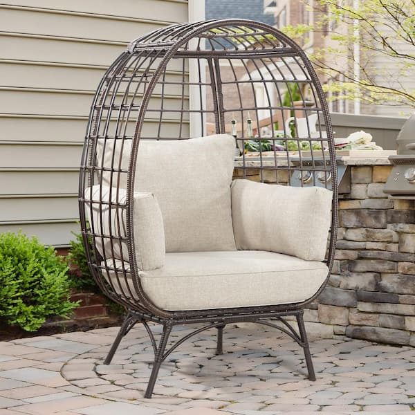 Brown PE Wicker Outdoor Lounge Chair with Beige Cushions