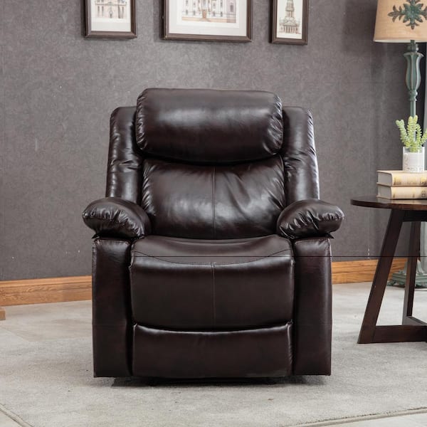 Brown PU Leather Manual Recliner Chair with Reclining Steel Rail System (Set of 1)
