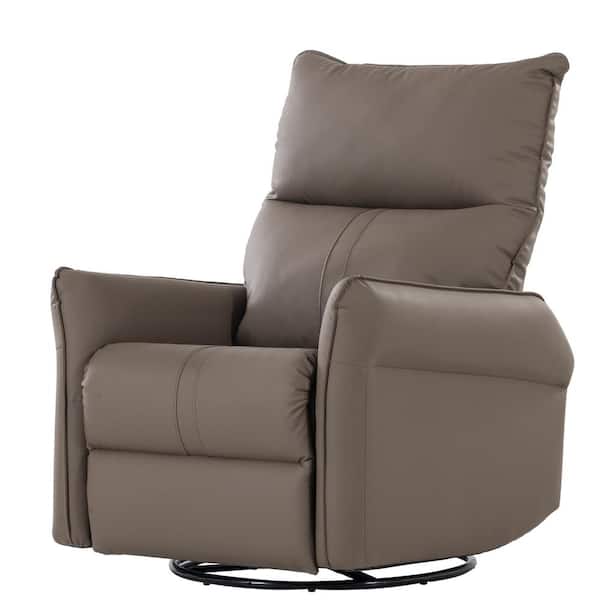 Brown PU Wood Outdoor Rocking Chair with Cushions, Swivel Rocking Chair for Bedroom, Living Room, Side Pocket