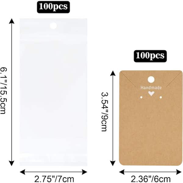 Brown Paper Jewelry Display Cards with Bags 3.5 x 2.4 in. for Earrings and Necklaces DIY Crafts Retail 100-Piece