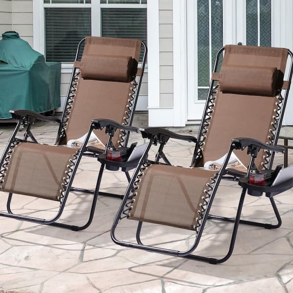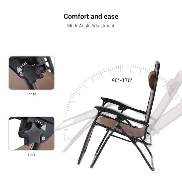 Brown Patio Adjustable Zero Gravity Chair, Metal Frame Outdoor Lounge Chair With a Side Tray