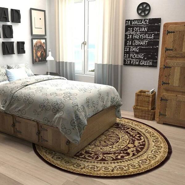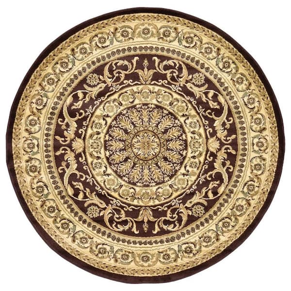 Brown Polypropylene 6 ft. x 6 ft. Medallion Indoor Round Area Rug