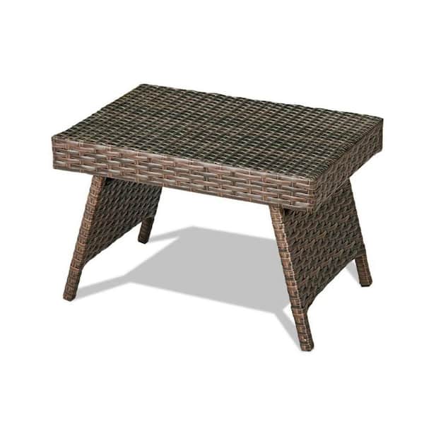 Brown Rectangular Wicker Folding Outdoor Side Table