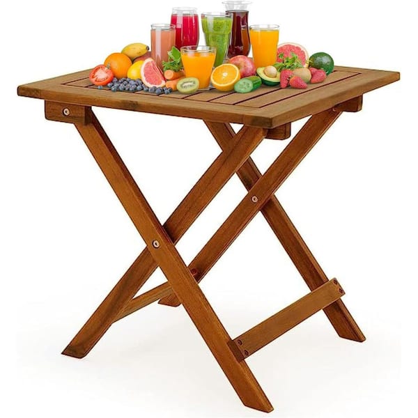 Brown Square Wood Outdoor Side Table for Patio, Garden