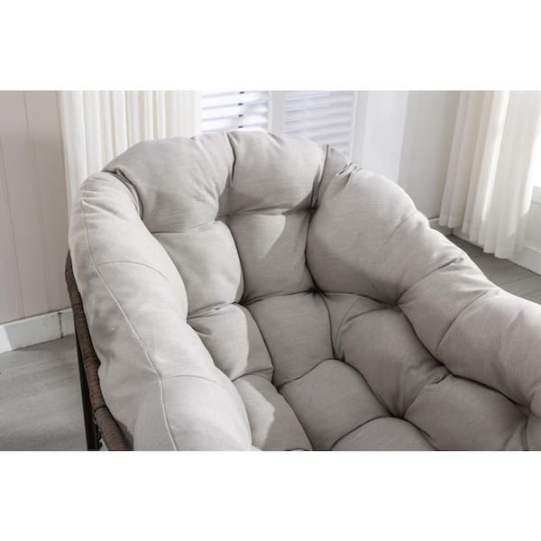 Brown Steel Metal Rattan Outdoor Rocking Chair with Beige Padded Cushion for Front Porch Patio