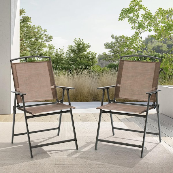 Brown Textilene Fabric Metal Folding Chair (Set of 2)
