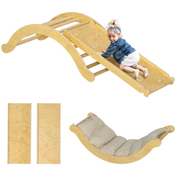 Brown Toddler Climbing Toys, Indoor 4 In 1 Climbing Set with Arch Climber, Ramp and Cushion