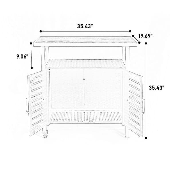 Brown Wicker Outdoor Bar Cart with Rolling Wheels Patio Bar Table Outdoor Storage Cabinet Buffet Cabinet Grill Cart