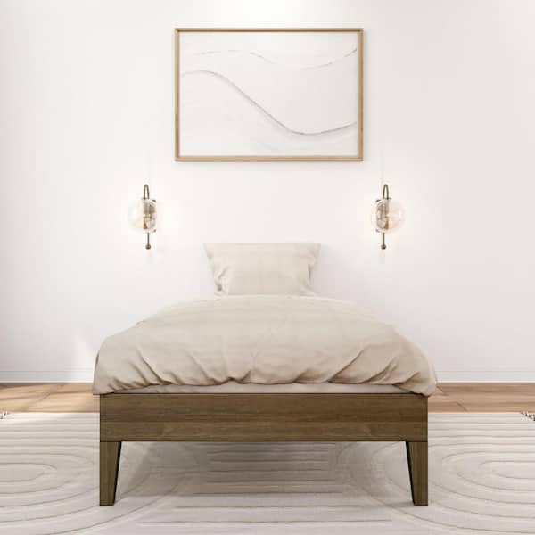 Brown, Wood Frame, Twin-Size Platform Bed, Matte Walnut