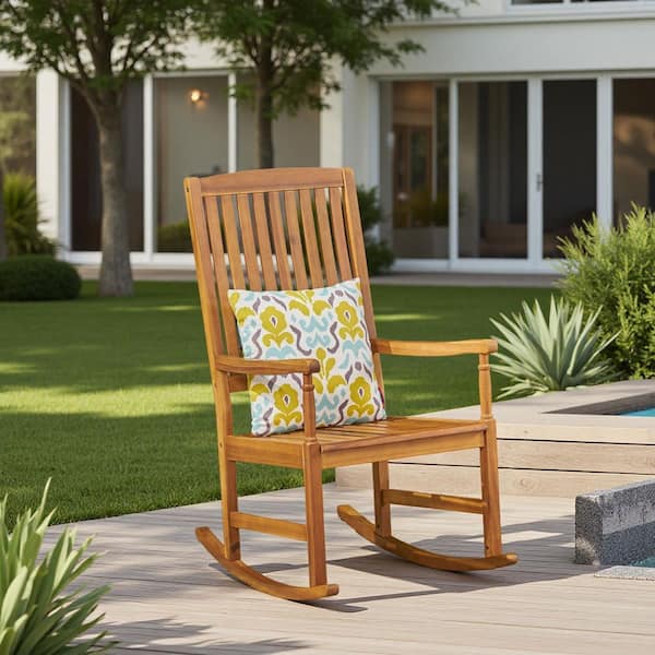 Brown Wood Outdoor Rocking Chair, Smooth Porch Rocker with 250 lbs. Support