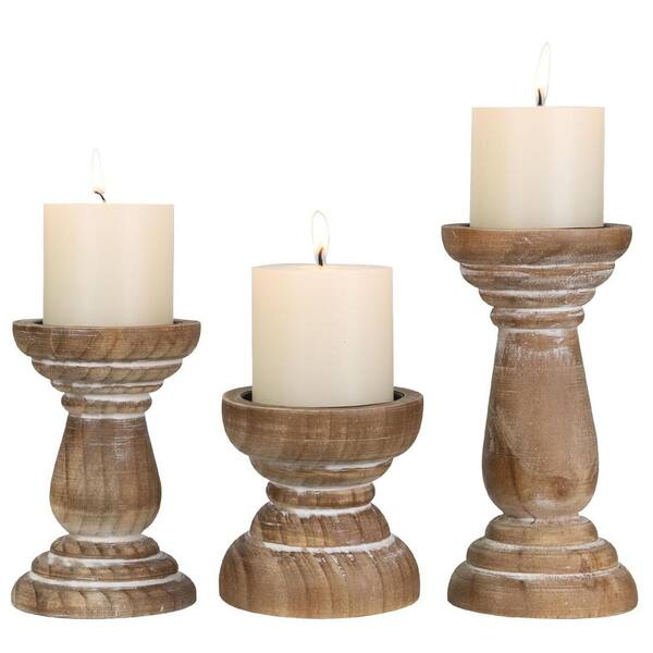 Brown Wood Pillar Candlestick Holders 3-Pack