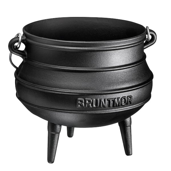 8 qt. Cast Iron Pre-Seasoned Potjie African Pot with Lid with Wooden Crate Size 3