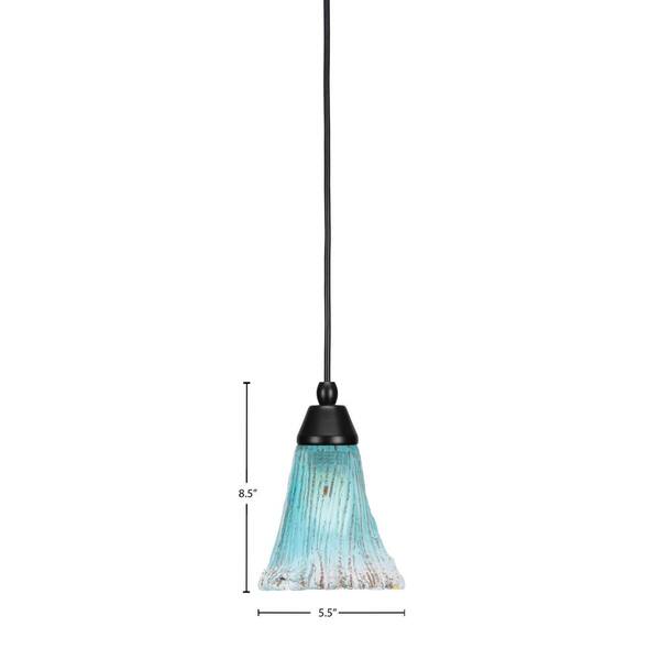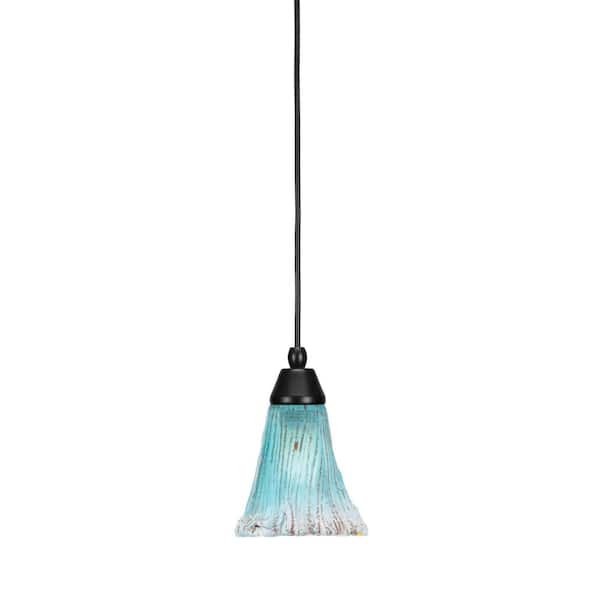 Bryson 100-Watt 1-Light Black Shaded Pendant Light Mini Pendant with 5.5" Teal Glass Shade, No bulb included