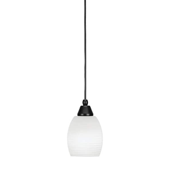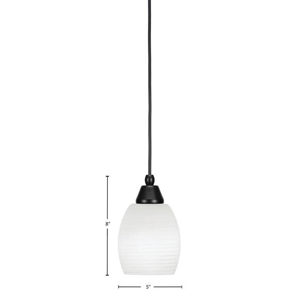 Bryson 100-Watt 1-Light Black Shaded Pendant Light Mini Pendant with 5" White Linen Glass Shade, No bulb included