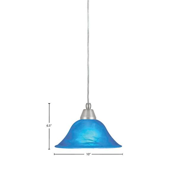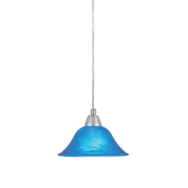 Bryson 100-Watt 1-Light Brushed Nickel Shaded Pendant Light Mini Pendant with 10 in. Blue Glass, No Bulb Included