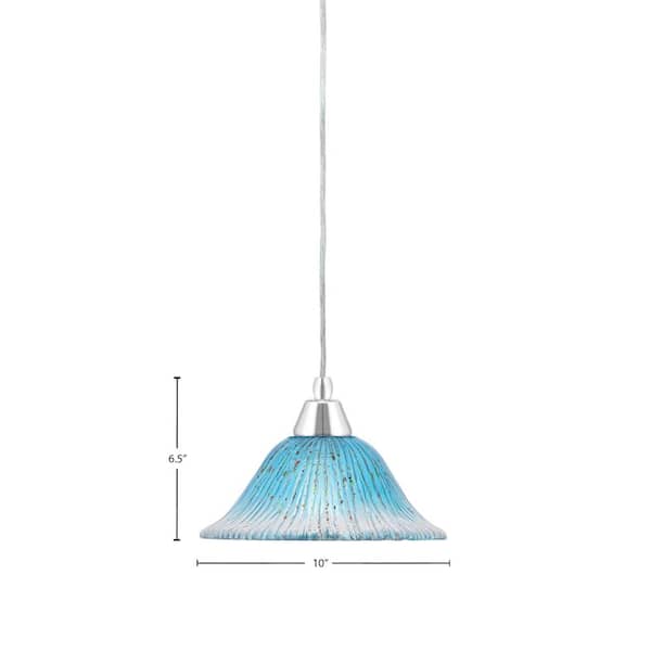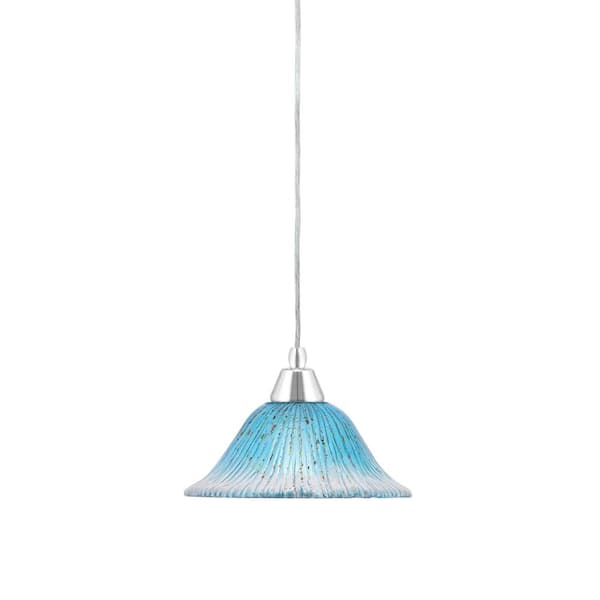 Bryson 100-Watt 1-Light Chrome Shaded Pendant Light Mini Pendant with 10 in. Teal Glass Shade, No Bulb Included