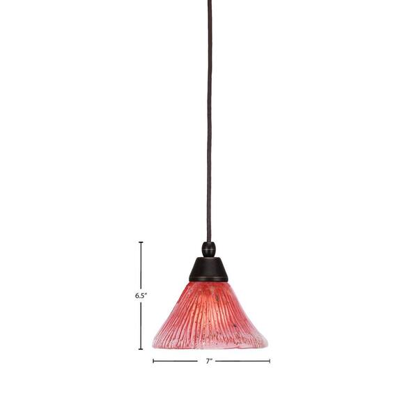 Bryson 100-Watt 1-Light Dark Granite Shaded Pendant Light Mini Pendant w/ 7 in. Raspberry Glass Shade, No Bulb Included