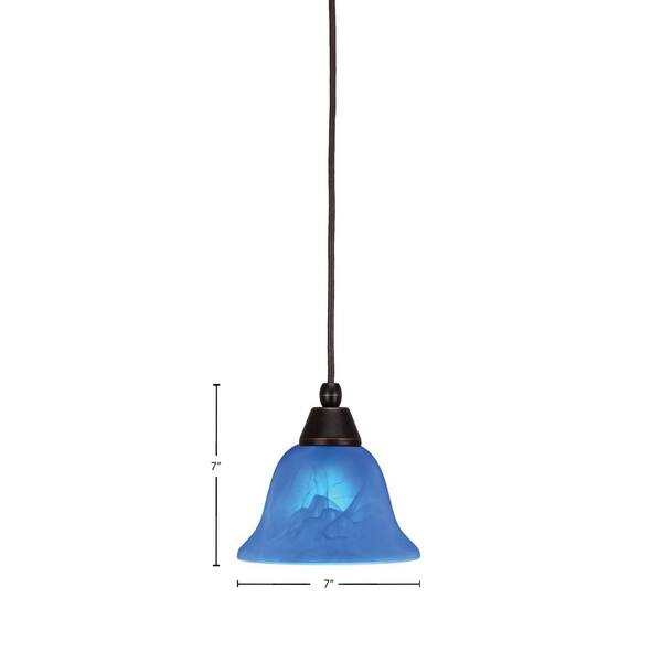 Bryson 100-Watt 1-Light Dark Granite Shaded Pendant Light Mini Pendant with 7 in. Blue Glass Shade, No Bulb Included