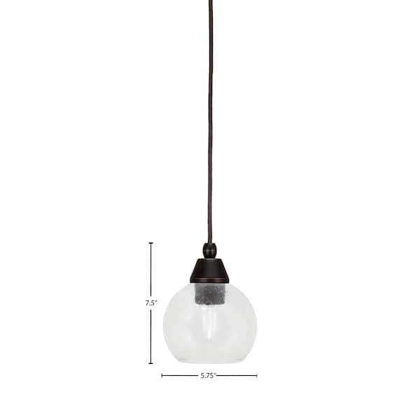 Bryson 5.75 in. 1-Light Dark Granite Cord Pendant Light with 5.75 in. Clear Bubble Glass Shade, no bulb included