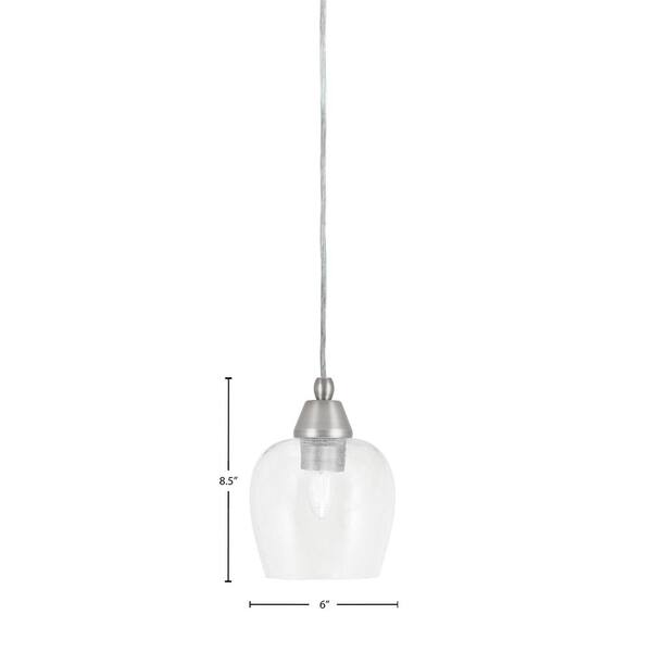 Bryson 6 in. 1-Light Brushed Nickel Cord Pendant Light with 6 in. Clear Bubble Glass Shade, no bulb included