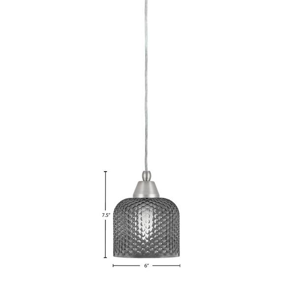 Bryson 6 in. 1-Light Brushed Nickel Cord Pendant Light with 6 in. Smoke Textured Glass Shade, no bulb included