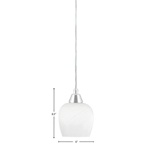 Bryson 6 in. 1-Light Chrome Cord Pendant Light with 6 in. White Marble Glass Shade, no bulb included