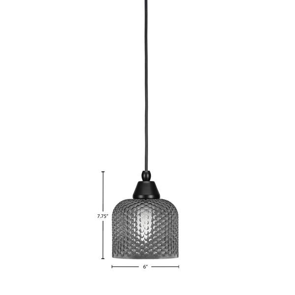 Bryson 6 in. 1-Light Matte Black Cord Pendant Light with 6 in. Smoke Textured Glass Shade, no bulb included