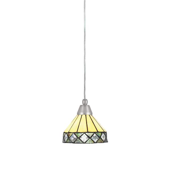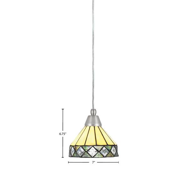Bryson 7 in. 1-Light Brushed Nickel Cord Pendant Light with 7 in. Diamond Peak Art Glass Shade, no bulb included