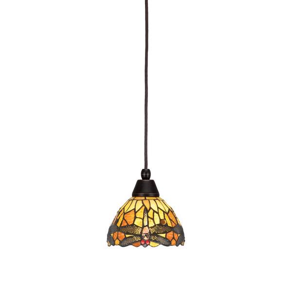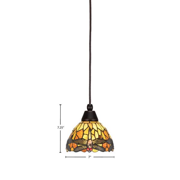 Bryson 7 in. 1-Light Dark Granite Cord Pendant Light with 7 in. Amber Dragonfly Art Glass Shade, no bulb included