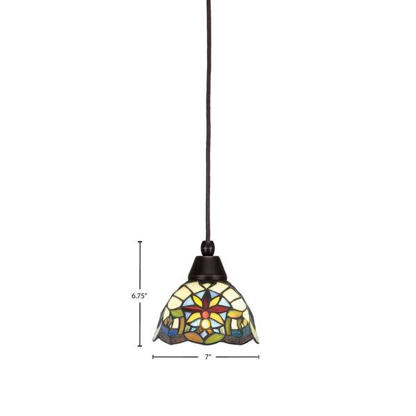 Bryson 7 in. 1-Light Dark Granite Cord Pendant Light with 7 in. Earth Star Art Glass Shade, no bulb included