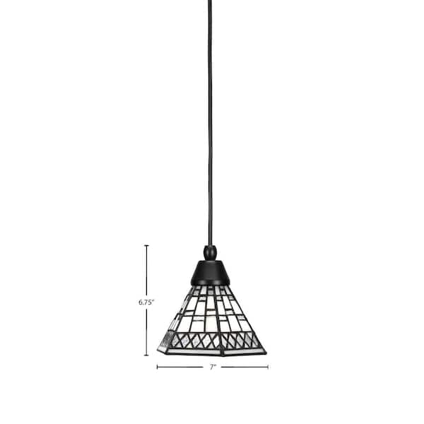 Bryson 7 in. 1-Light Matte Black Cord Pendant Light with 7 in. Pewter Art Glass Shade, no bulb included