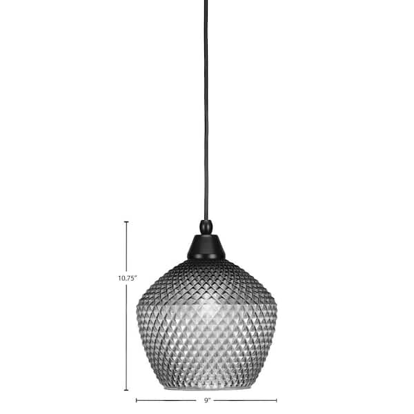 Bryson 9 in. 1-Light Matte Black Cord Pendant Light with 9 in. Smoke Textured Glass Shade, no bulb included