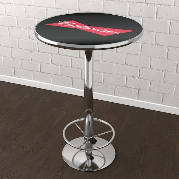 Budweiser 3-Piece Round Acrylic Top Chrome Bar Table Set (Seats-2)