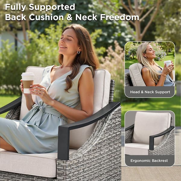 3-Piece Wicker Outdoor Patio Sofa Sectional Couch Set with Ottomans, Beige Cushions