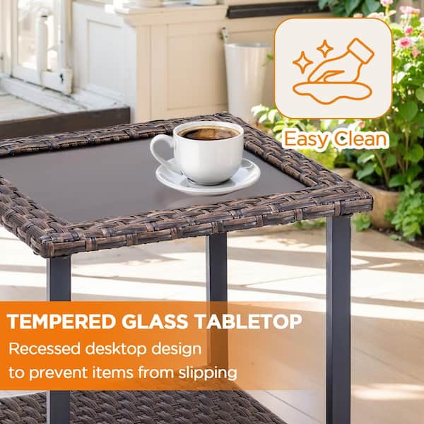 3-Piece Wicker Patio Conversation Set with Blue Cushions