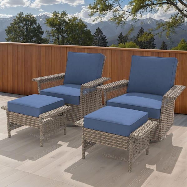 4-Piece Wicker Patio Conversation Set with Blue Cushions