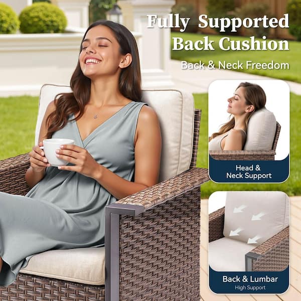 5-Piece Brown Wicker Patio Conversation Set with Swivel Glider, Outdoor Deep Seating Set with Beige Cushions