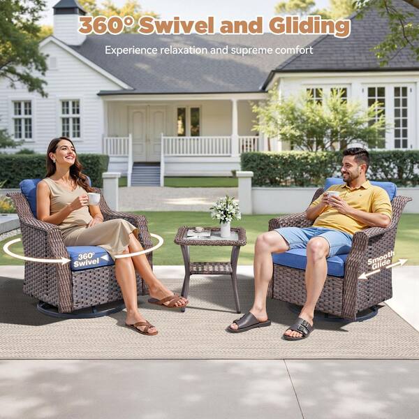 7-Piece Wicker Patio Conversation Set with Swivel Rocking Chairs, Outdoor Couch Seating Set with Blue Cushions