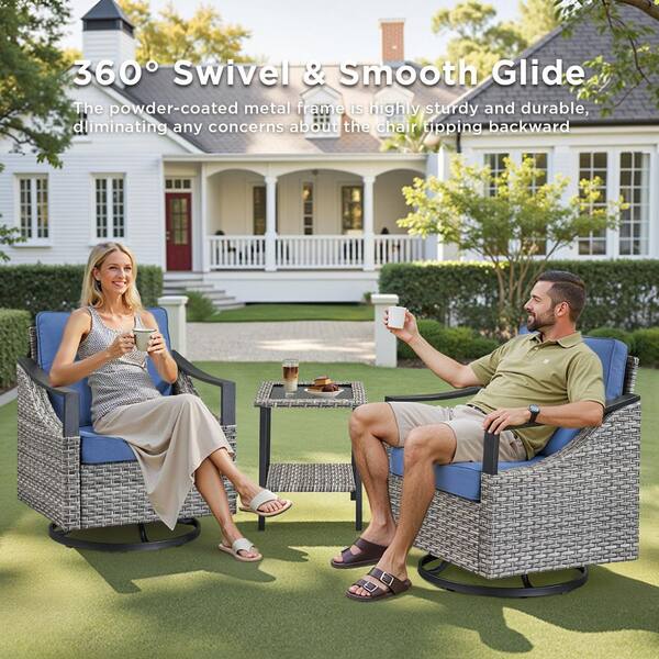 9-Piece Metal Wicker Patio Conversation Set with Swivel Glider, Outdoor Deep Seating Couch Set with Blue Cushions