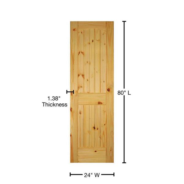 24 in. x 80 in. Left-Handed 2-Panel Solid Core Unfinished Arch Top V-Grooved Knotty Pine Single Prehung Interior Door