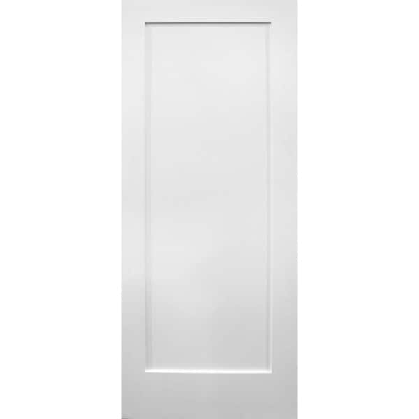 28 in. x 80 in. Left-Handed 1-Panel Flat Ovolo Primed Wood Single Prehung Interior Door