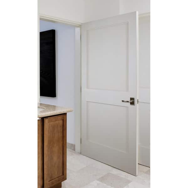 28 in. x 80 in. Right-Handed 2-Panel Shaker Solid Core Primed Pine Wood Single Prehung Interior Door