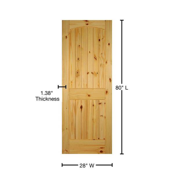28 in. x 80 in. Right-Handed 2-Panel Solid Core Unfinished Arch Top V-Grooved Knotty Pine Single Prehung Interior Door